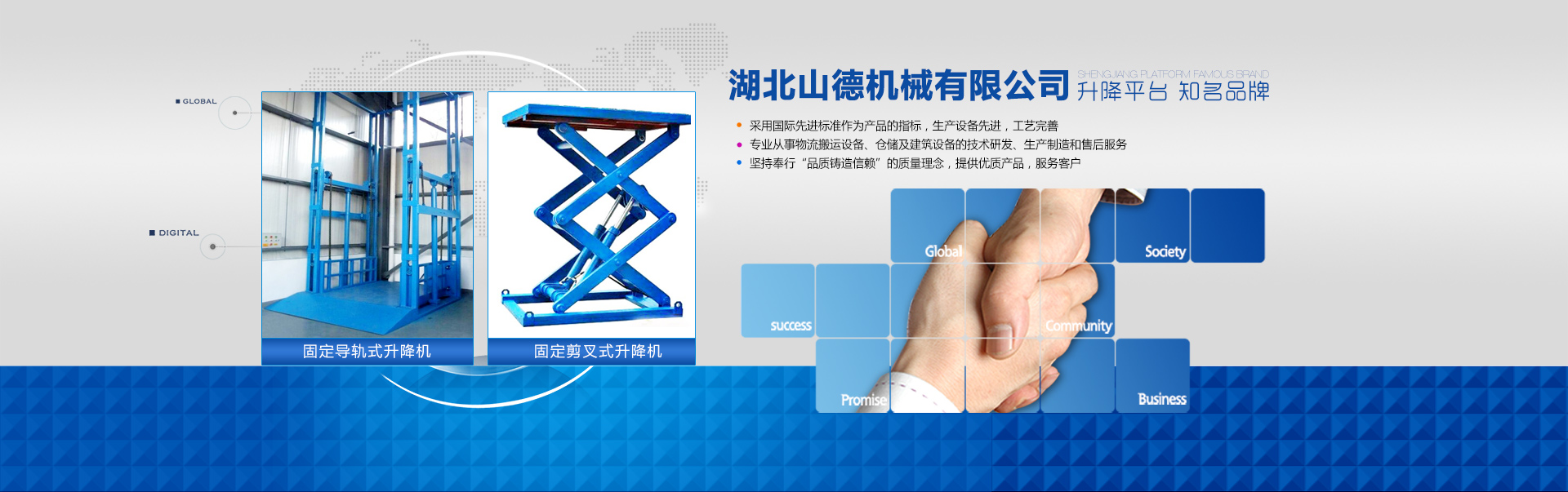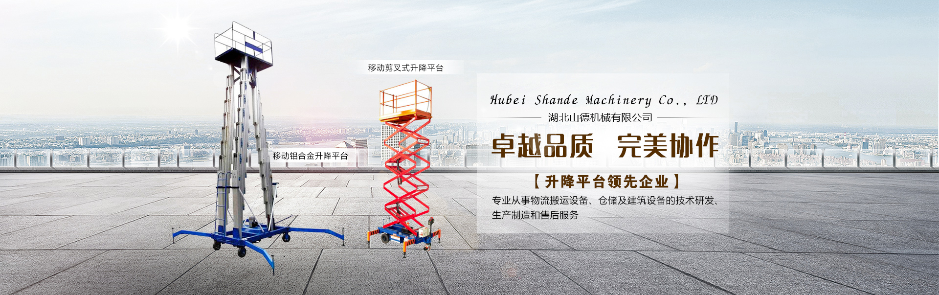湖北山德機(jī)械有限公司始創(chuàng)于2009年是生產(chǎn)液壓機(jī)械的專業(yè)公司,公司堅(jiān)持“誠信為本,服務(wù)至上,永遠(yuǎn)承諾用戶需求”的原則,經(jīng)過我們多年不懈的努力,現(xiàn)在已經(jīng)發(fā)展成為華中地區(qū)專業(yè)的液壓升降機(jī)的生產(chǎn)銷售服務(wù)型企業(yè)之一,公司在經(jīng)營過程中和合作廠商緊密聯(lián)系,不斷推出高質(zhì)優(yōu)價(jià)的產(chǎn)品,為用戶提供一站式服務(wù),不斷完善產(chǎn)品類型和產(chǎn)品質(zhì)量,依靠強(qiáng)大的銷售網(wǎng)絡(luò)與優(yōu)良的售后服務(wù)贏得了廣大用戶的信賴與支持。 公司經(jīng)營范圍:固定式升降機(jī) 移動(dòng)升降機(jī) 液壓登車橋等液壓升降設(shè)備。 公司承諾:若出現(xiàn)產(chǎn)品質(zhì)量問題,不論質(zhì)保期內(nèi)還是保期外,凡購買我公司所經(jīng)營的產(chǎn)品,都將享受終身維修服務(wù),歡迎廣大客戶和廠商來電咨詢!